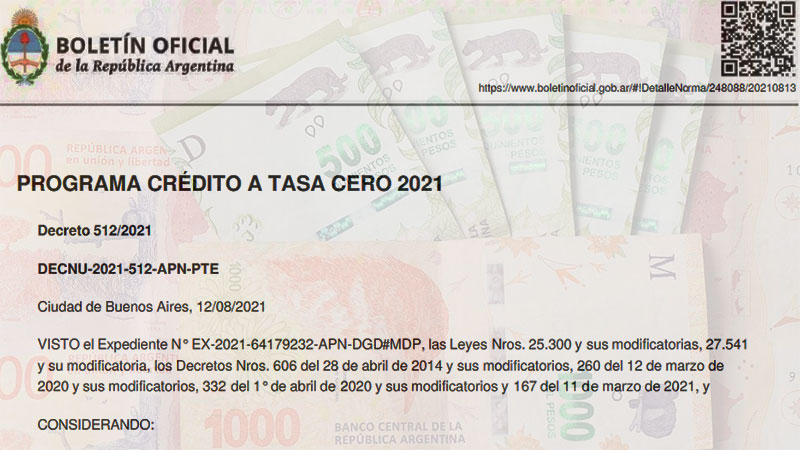 El Gobierno nacional lanza nuevos Créditos a Tasa Cero por hasta $150.000 para monotributistas de todo el país. Más de 1 millón de pequeños contribuyentes podrán acceder al financiamiento. Los créditos garantizados por el Ministerio de Desarrollo Productivo se tramitarán a través de la página web de la AFIP y las entidades financieras los acreditarán en un solo desembolso en la tarjeta de crédito de cada pequeño contribuyente. Los préstamos contarán con 6 meses de gracia y la devolución se realizará en 12 cuotas sin intereses. La posibilidad de solicitar un Crédito a Tasa Cero estará habilitada a partir de fines de agosto.